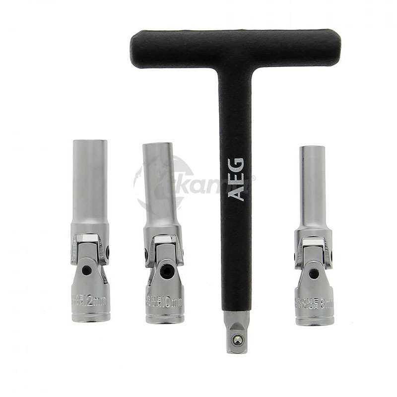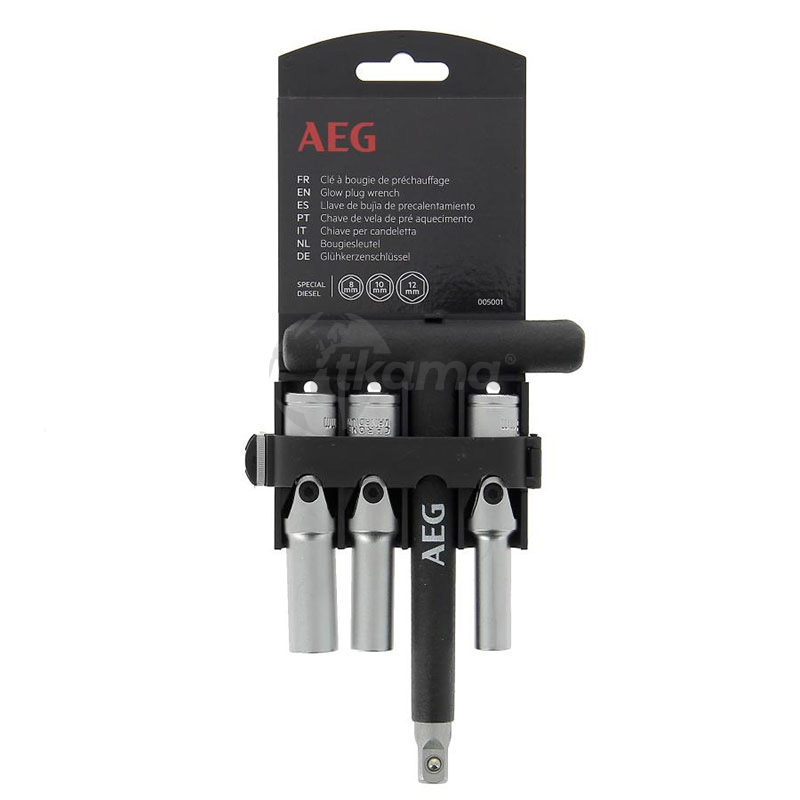 AEG Llave para bujía de precalentamiento Diesel, articulada con 3 adaptadores (8mm-10mm-12mm).