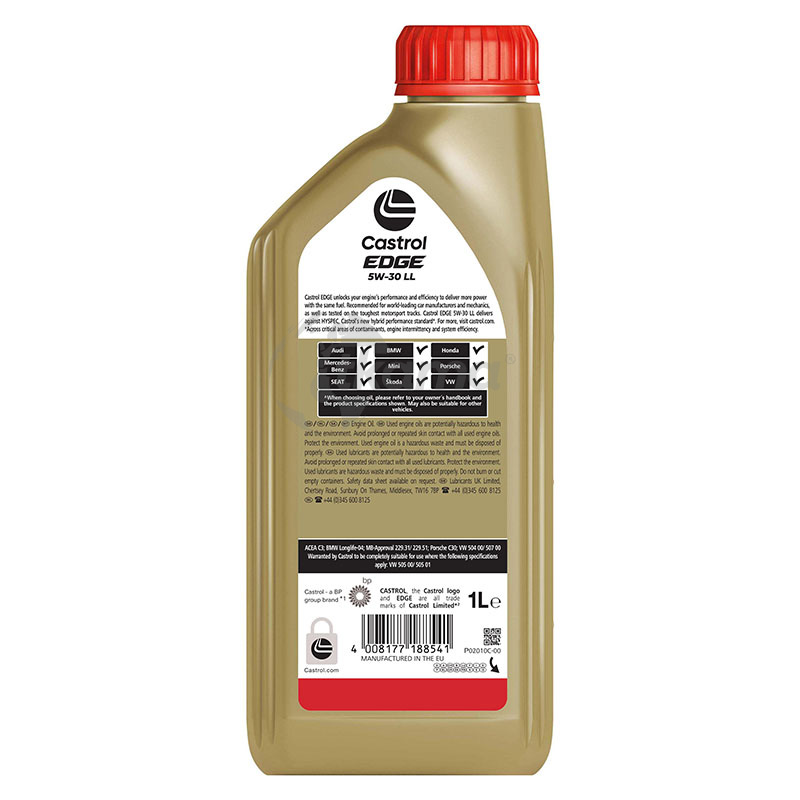 Castrol EDGE 5W-30 LL con Fluid TITANIUM es la elección natural para los conductores que exigen un rendimiento óptimo de los motores de vehículos modernos que requieren un alto nivel de protección y lubricantes de mayor rendimiento.