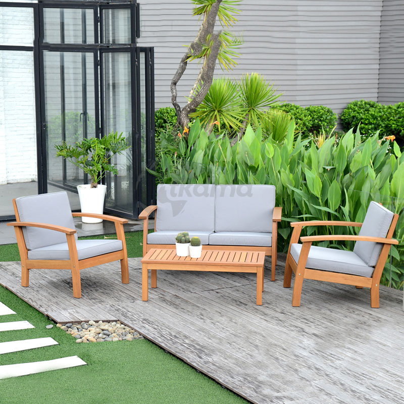 CHILLVERT conjunto milan madera de eucalipto fsc imitacion teka. incluye sofa 2 plazas(127,2×80,7×74,3cm) + 2 sillones individuales(80,5×71,2×74,3cm) + mesa(97,3×49,3×33,45cm). cojineria en poliester color gris