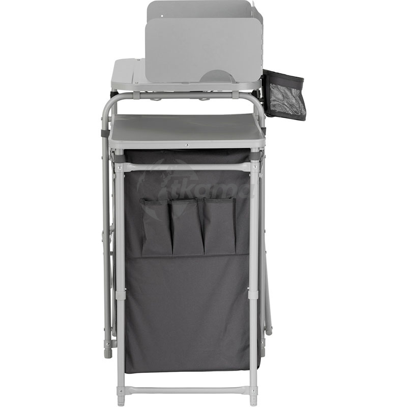 COLEMAN Mueble de cocina plegable, con mesa lateral para la prepación de alimentos. Con soporte para basura y cartucho gas, Estante para condimentos y botella de gas, Armario textil para guardar los alimentos y Paravientos. Estructura de cocinado de acero y mesa lateral de aluminio. Dimensiones abierto: 140 x 60 x 98 cm .Dimensiones cerrado: 80 x 48 x 14 cm .Peso 14,5 Kg.