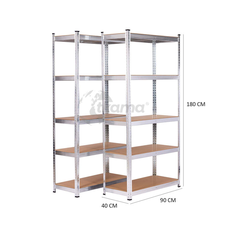CATTER HOUSE Set 2 estanterias metálicas galvanizadas en kit “max pro 5 baldas mdf 90x40x180 cm”