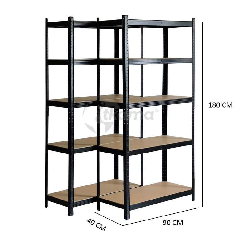 CATTER HOUSE set 2 estanterias metálicas negras en kit “hans plus 5 baldas mdf 90x40x180 cm”