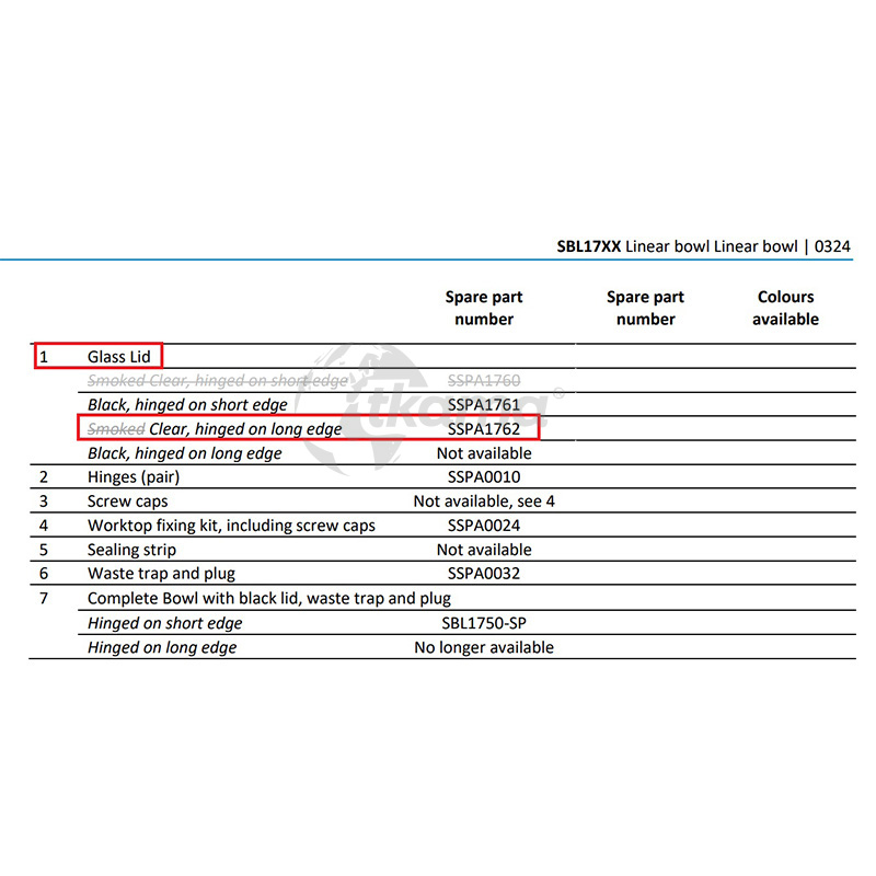 Thetford spares kit.glass lid.linear bowl.hinged s/side.sbk